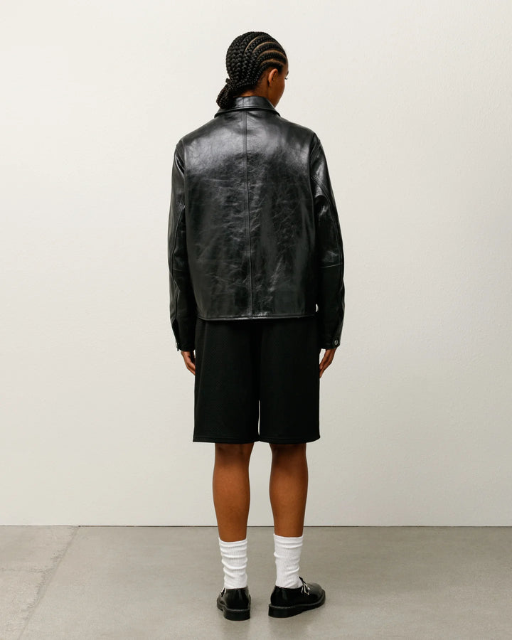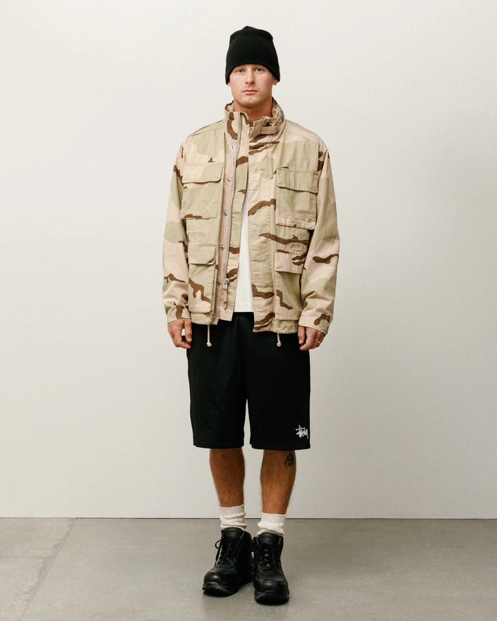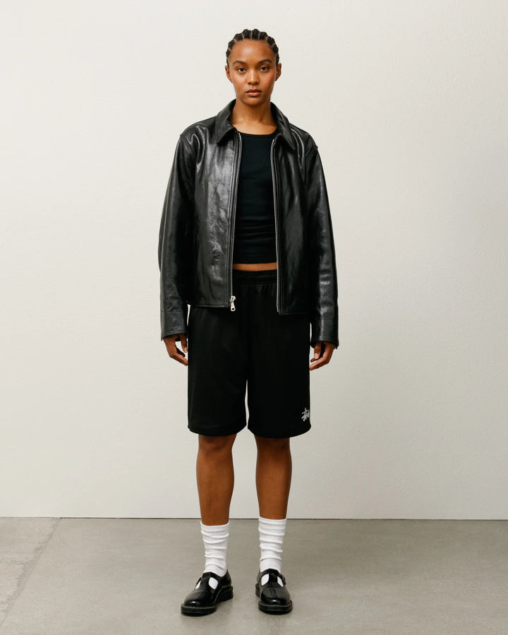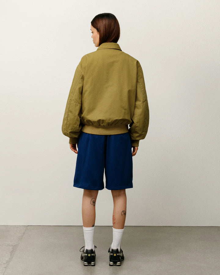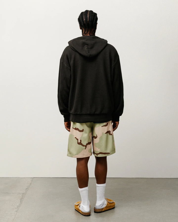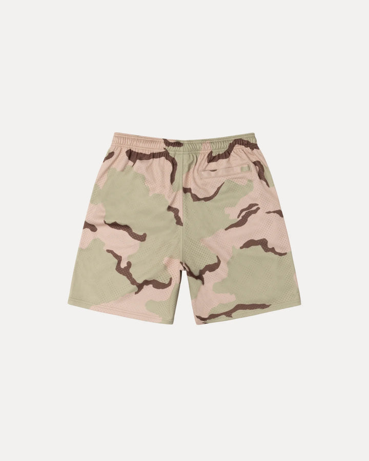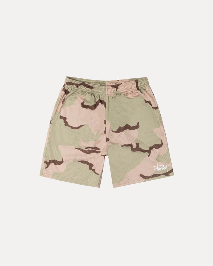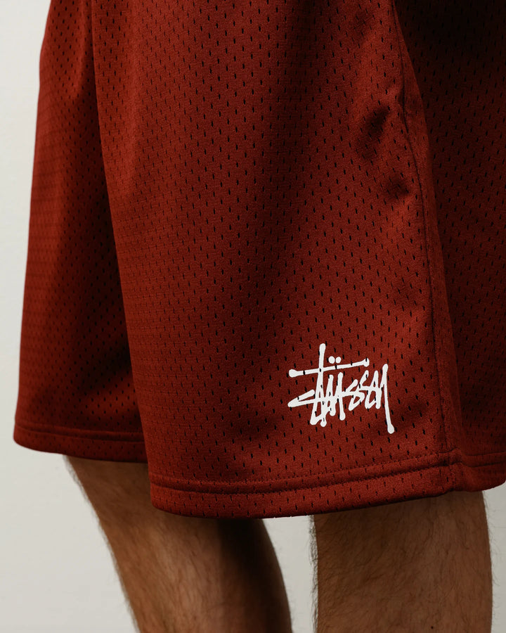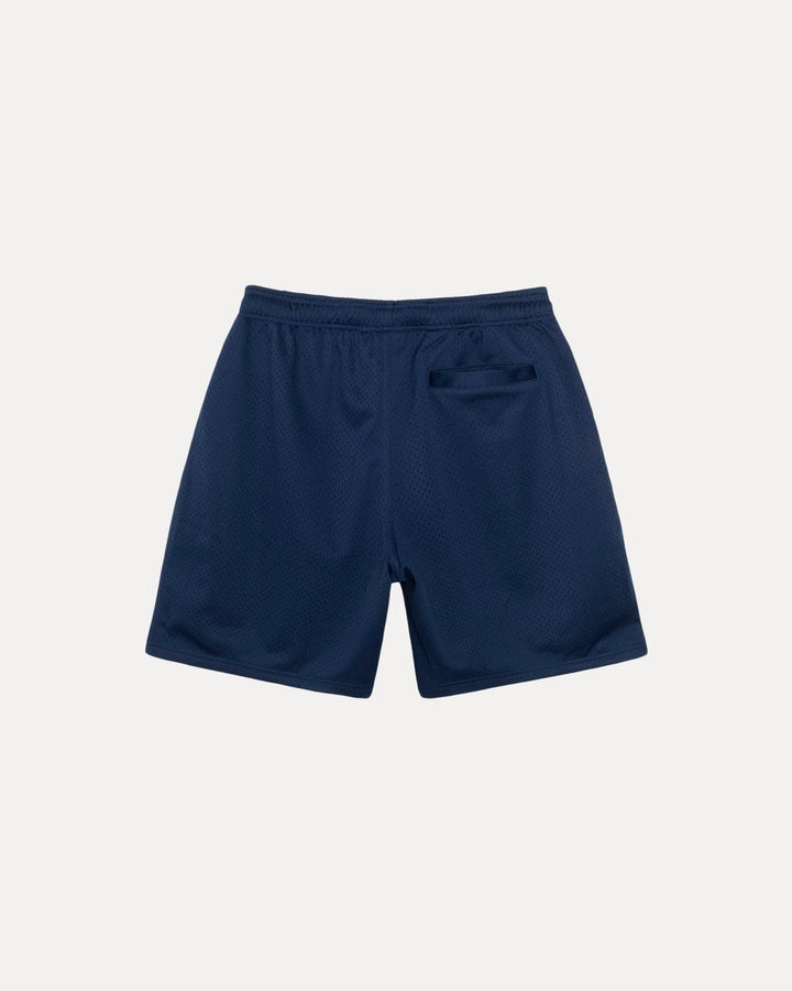 Relaxed fit mesh short with an elastic waist and internal drawcord. Stüssy basic logo printed on left leg.