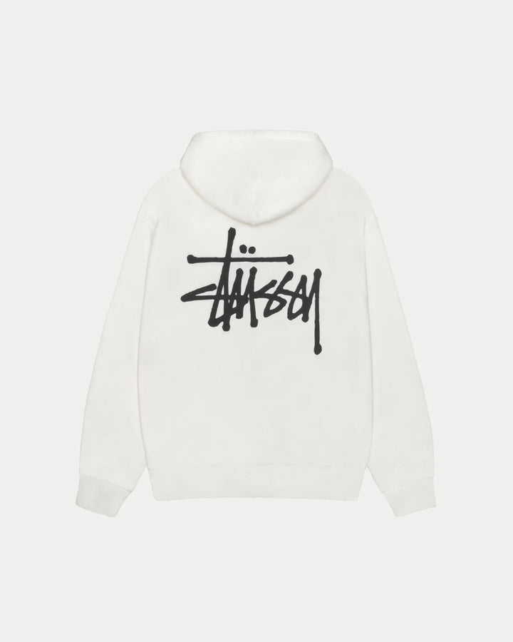 Relaxed fit zip-front fleece hoodie in a heavyweight 430gsm cotton blend. Screenprinted graphics at left chest and across back.
