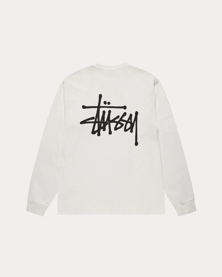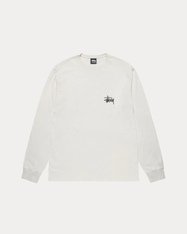 Relaxed fit tee in midweight 220gsm cotton jersey. Stüssy basic logo screenprinted at left chest and across back.
