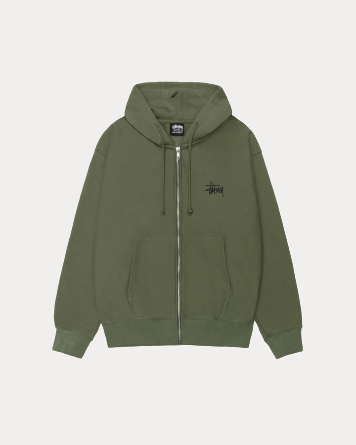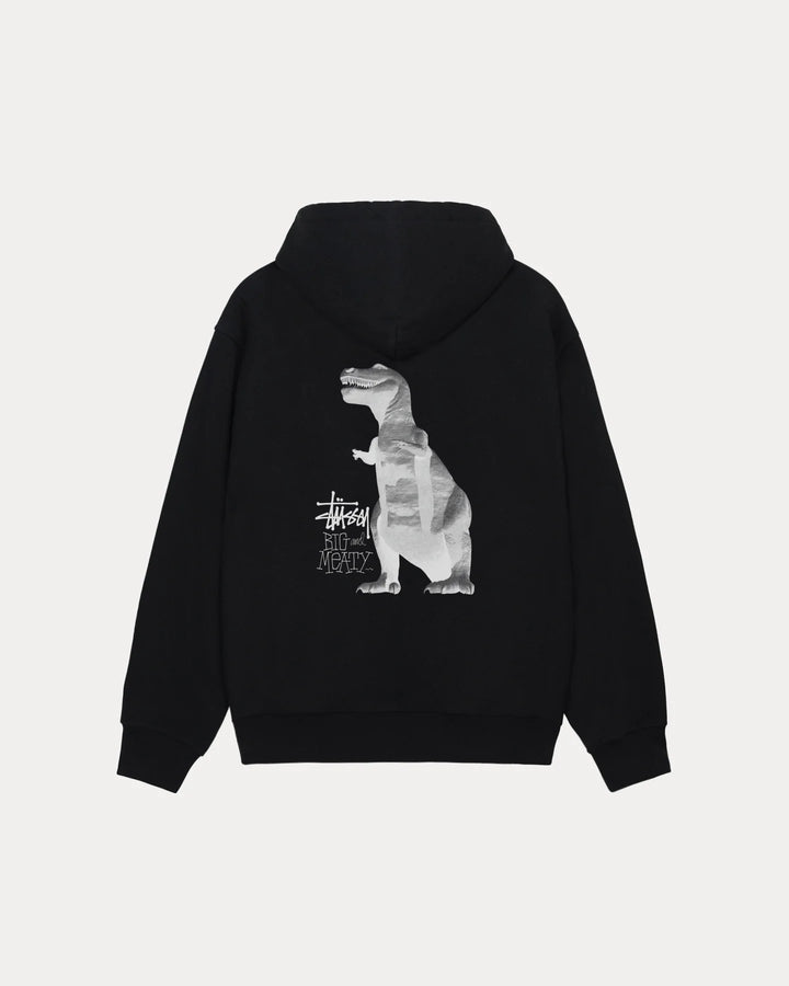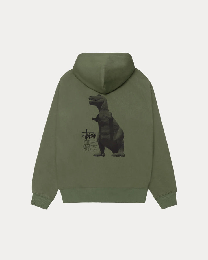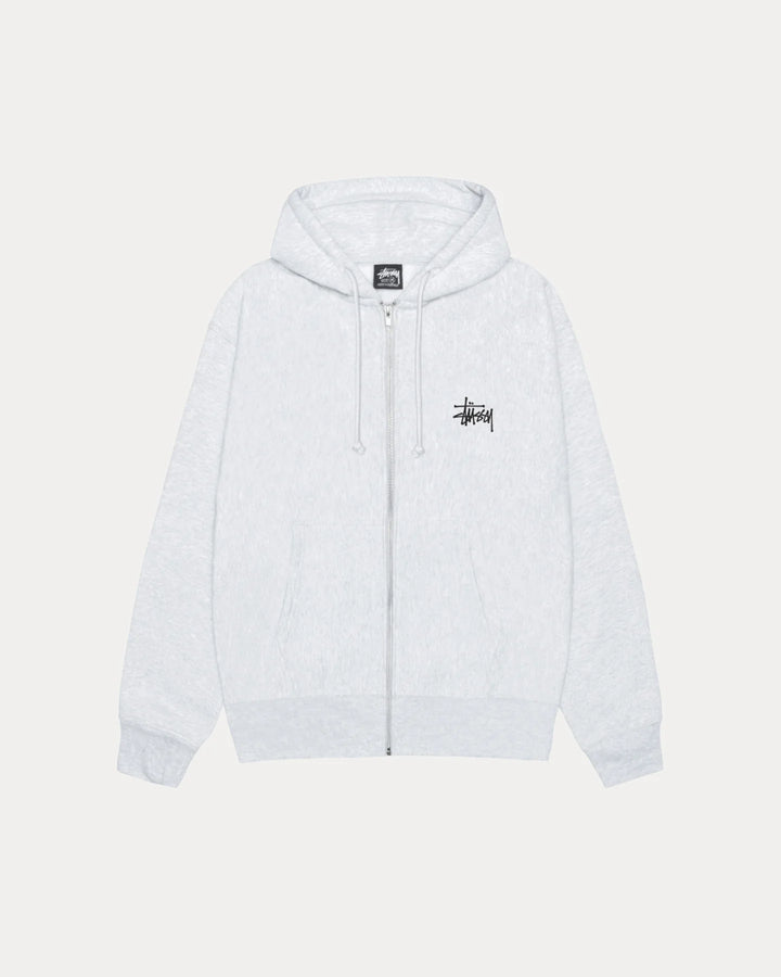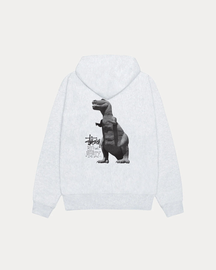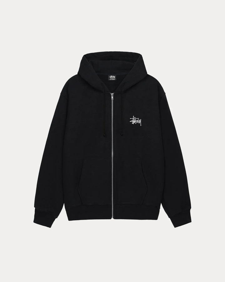 Relaxed fit zip-front fleece hoodie in a heavyweight 430gsm cotton blend. Screenprinted graphics at left chest and across back.