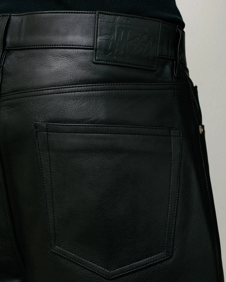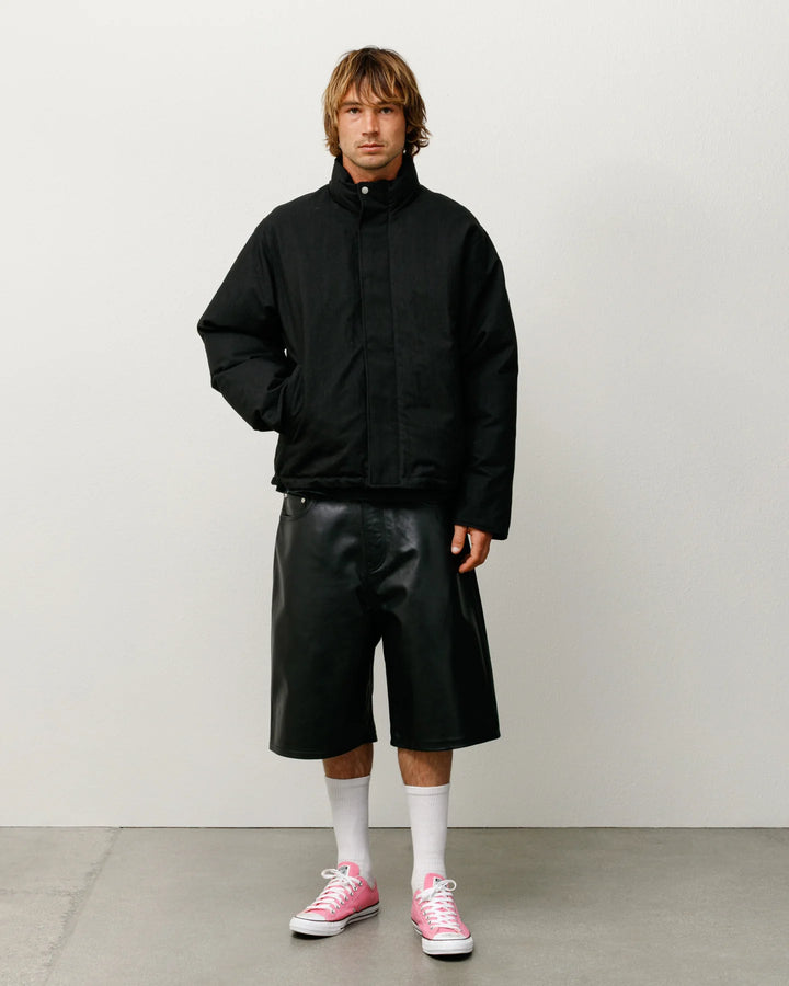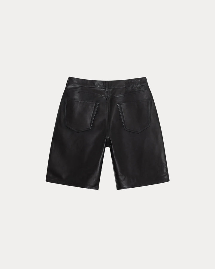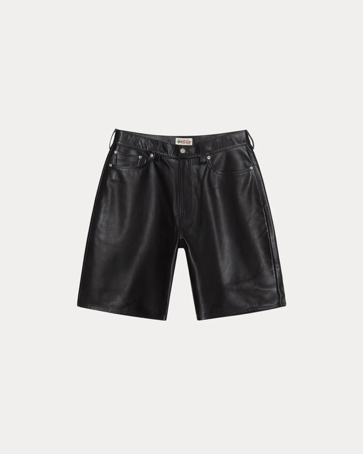 Baggy short in heavy weight leather. Oversized waist with a relaxed rise and roomy cut. Tonal leather Stüssy logo patch. Size down for a true-to-size fit in the waist, or order your normal size for a baggier fit. Fully lined.