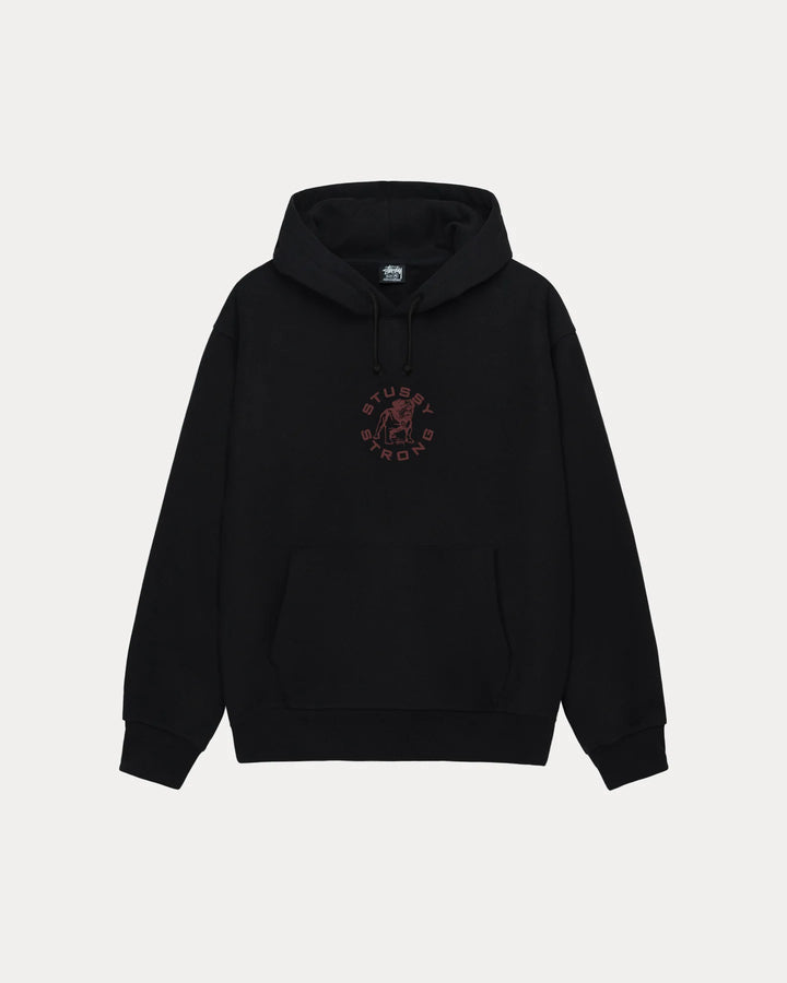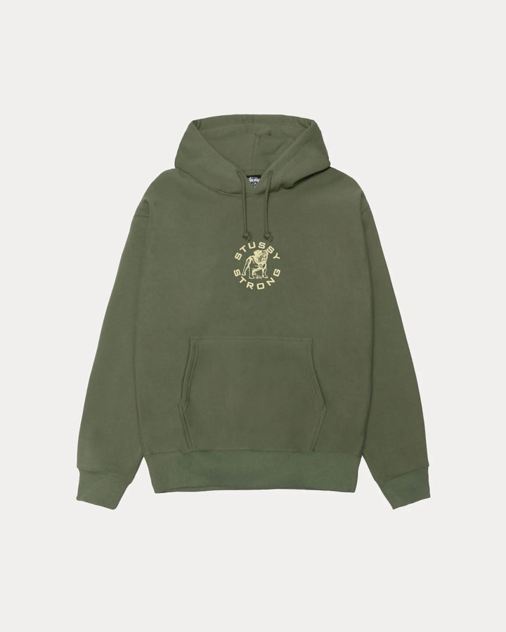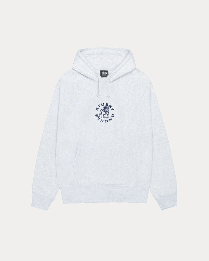 Relaxed fit zip-front fleece hoodie in a heavyweight 430gsm cotton blend. Screenprinted graphics at left chest and across back.