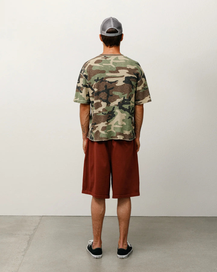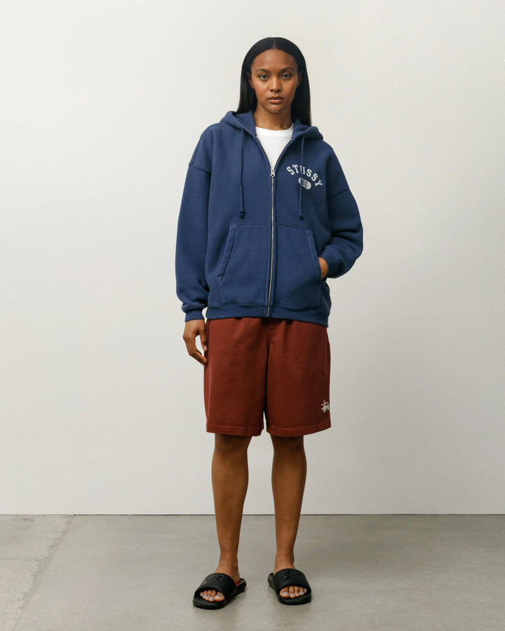 Relaxed fit garment washed short in 350gsm cotton jersey. Stüssy basic logo embroidery at left leg.
