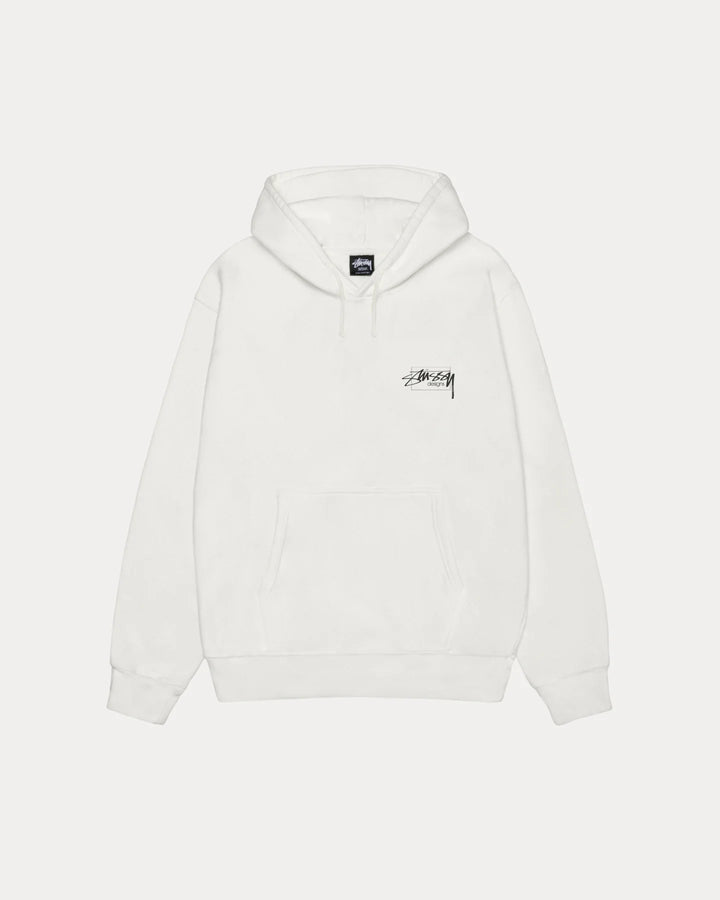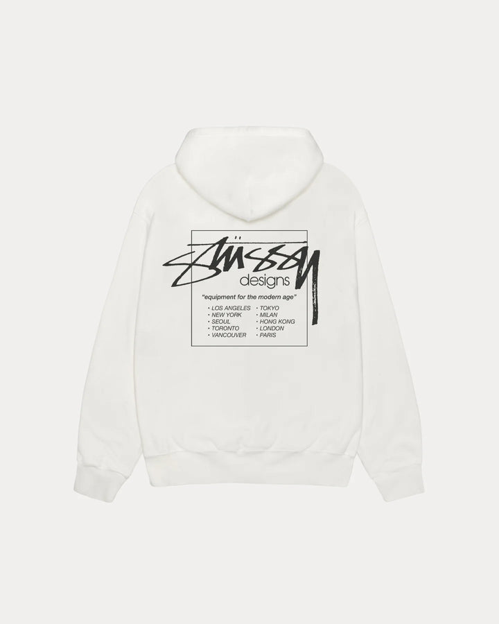 Relaxed fit zip-front fleece hoodie in a heavyweight 430gsm cotton blend. Screenprinted graphics at left chest and across back.