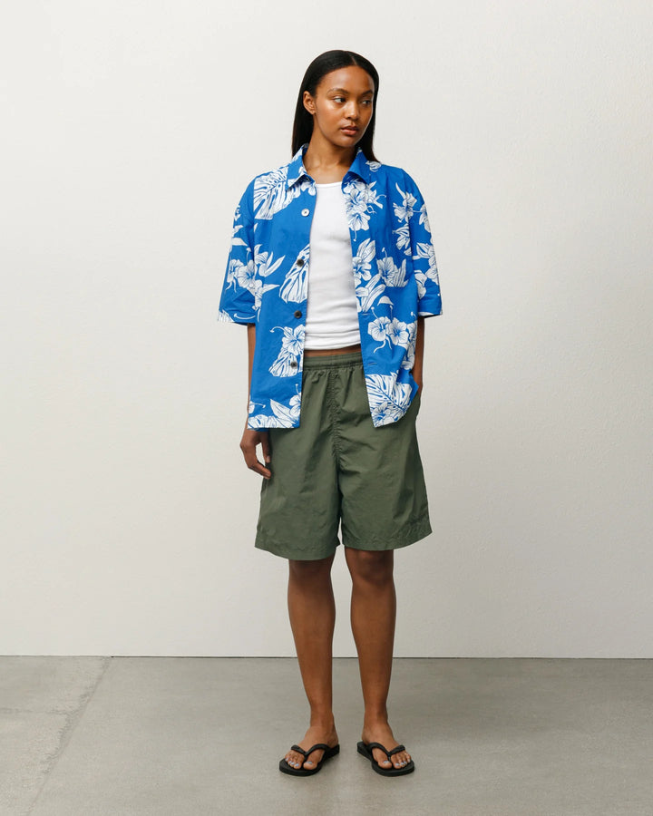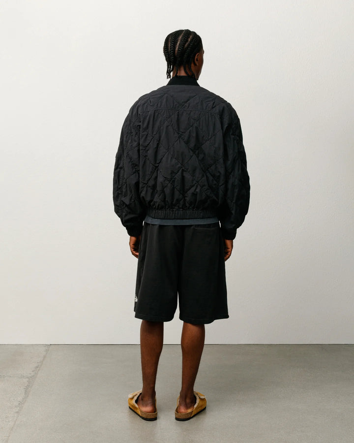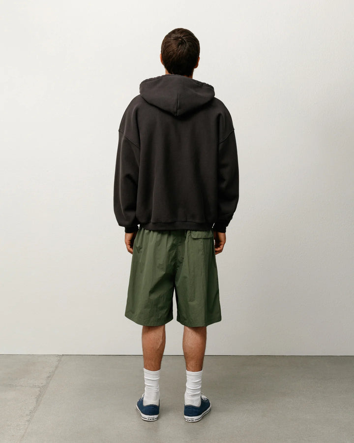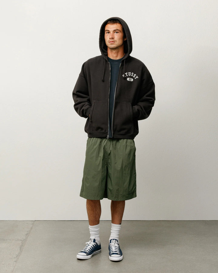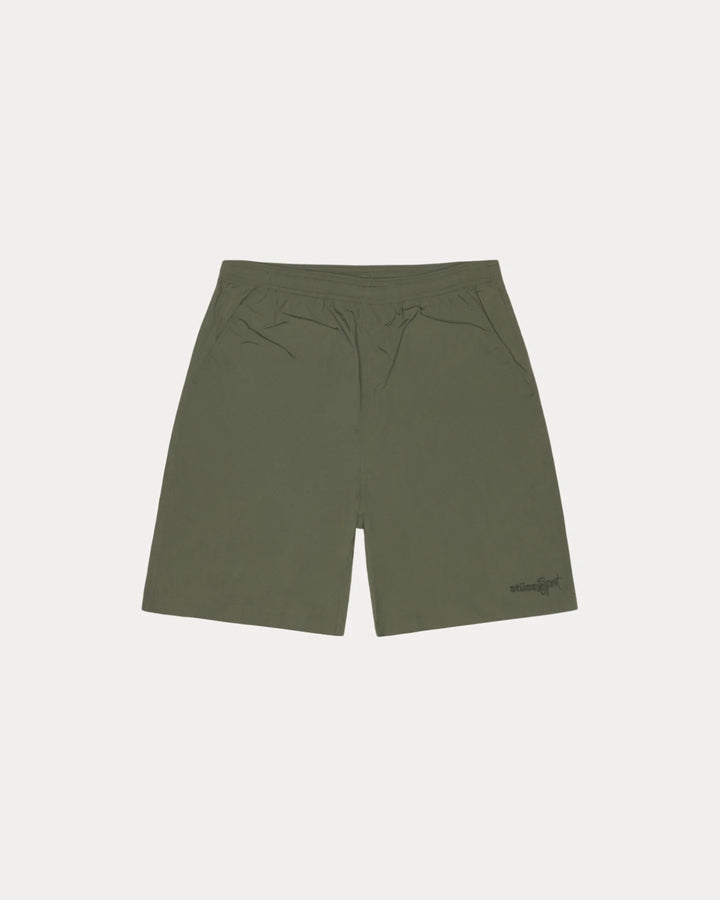 Relaxed fit, lightweight nylon short. Elastic waist with internal drawcord. Stüssy sport logo in tonal embroidery at left leg.