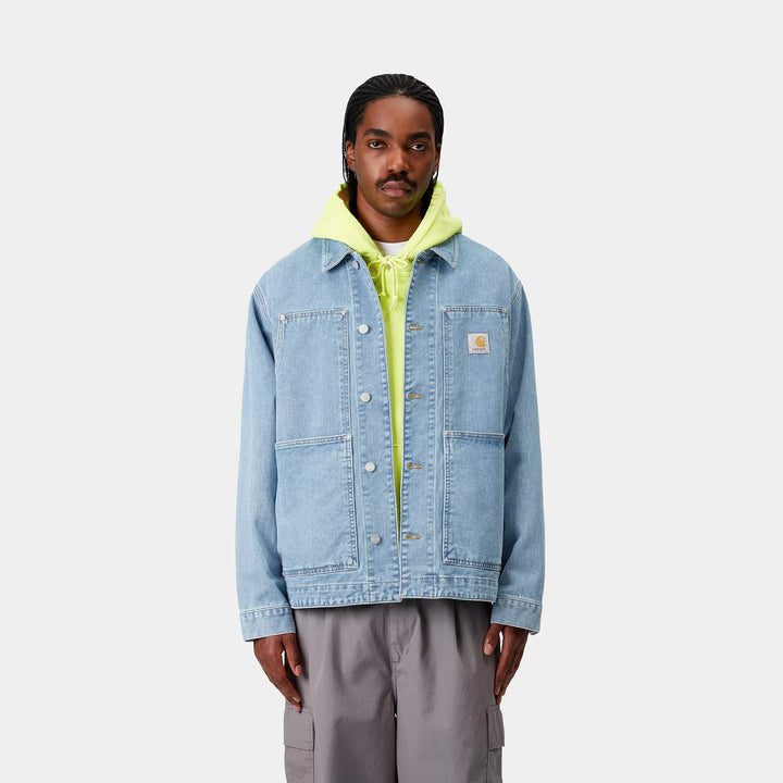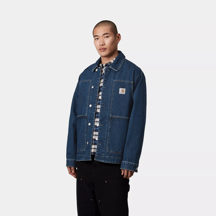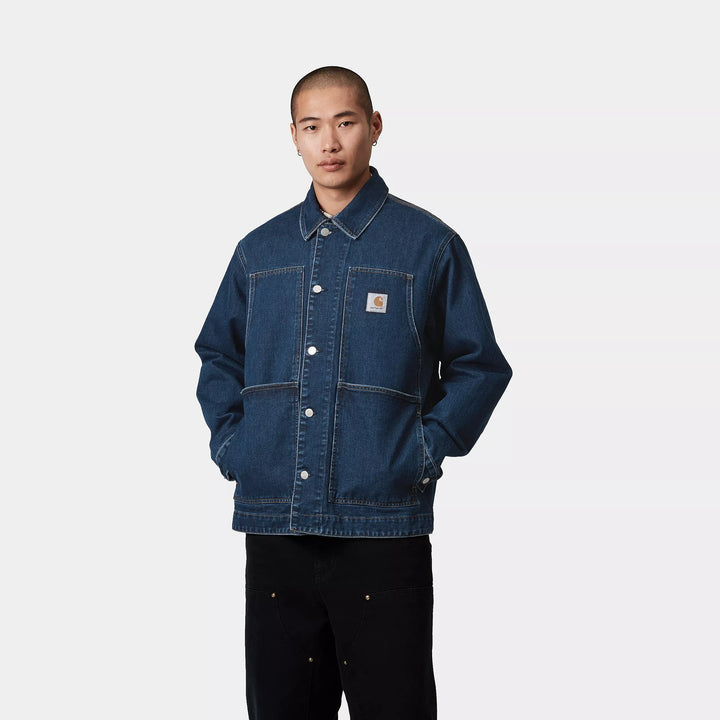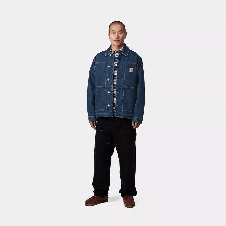 The OG Double Front Jacket is made in our original loose fit from unlined, heavyweight cotton denim. Drawing inspiration from the Double Knee Pant, the jacket features double-layer pockets on the front. These are reinforced by bartack stitching at vital stress points and metal rivets. An adjustable bottom band and cuffs offer an adaptable fit. A woven Square Label completes the design.