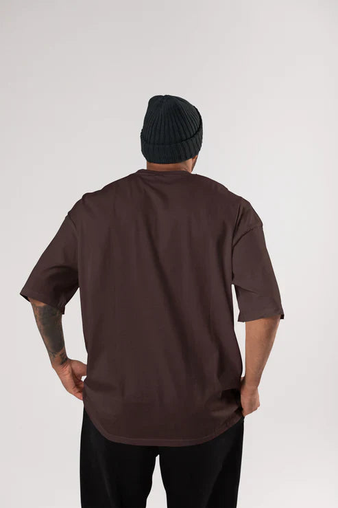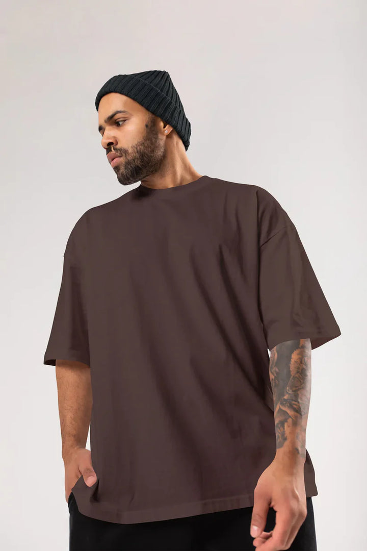Rivon | Plain Beige Drop Shoulder T-Shirt For Mens