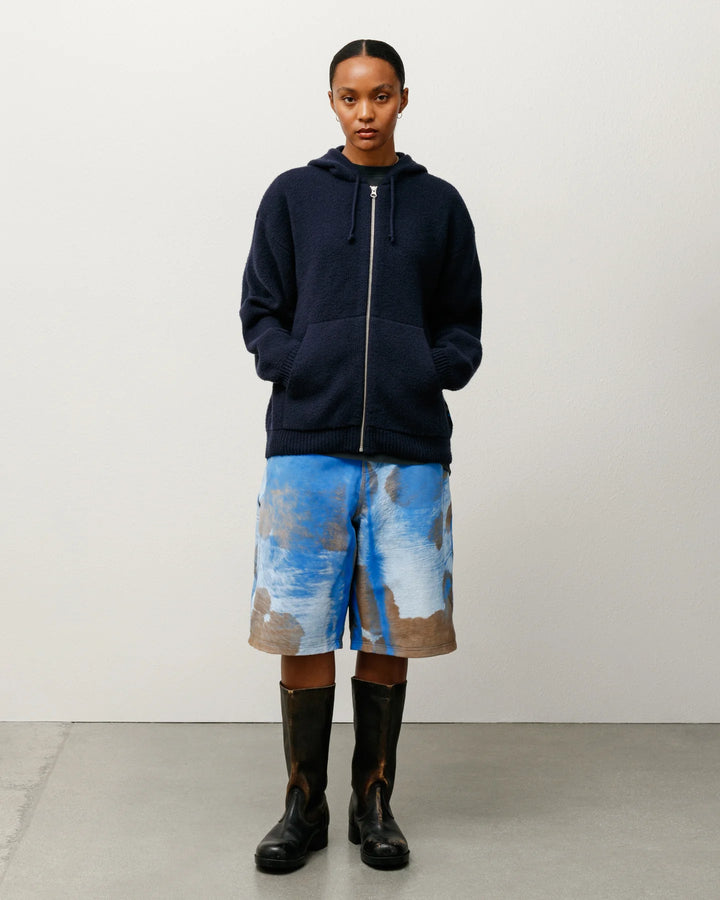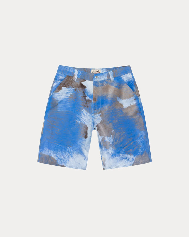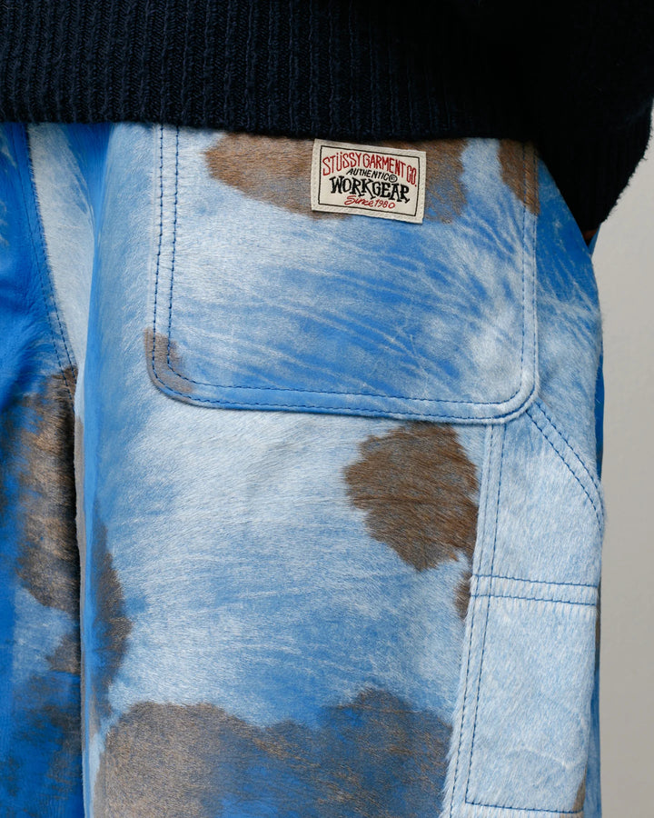 Baggy leather short with a brushed ponyhair texture, fully lined. Roomy fit with a relaxed rise. Features branded nickel shank hardware and tonal topstitching. Stüssy authentic workgear label stitched at rear pocket.