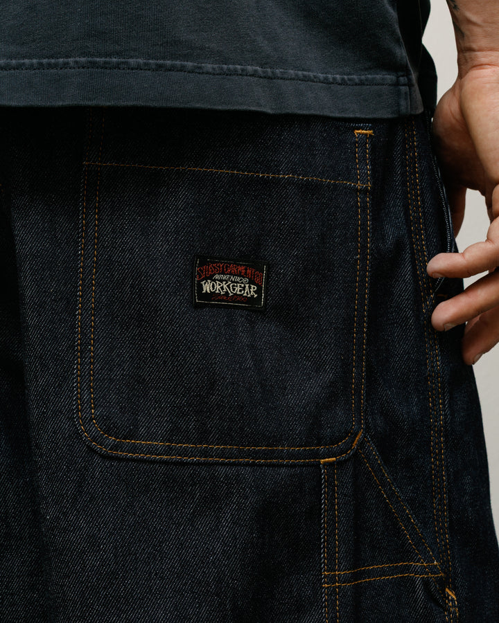 Baggy short in 14oz stonewashed denim. Roomy fit with a relaxed rise. Branded nickel shank hardware and Stüssy authentic workgear label at rear pocket. Size down for a more true-to-size fit in the waist.