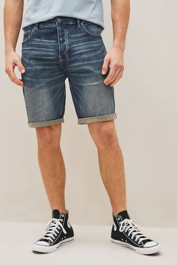 Stretch Denim Shorts For Mens Dark Blue