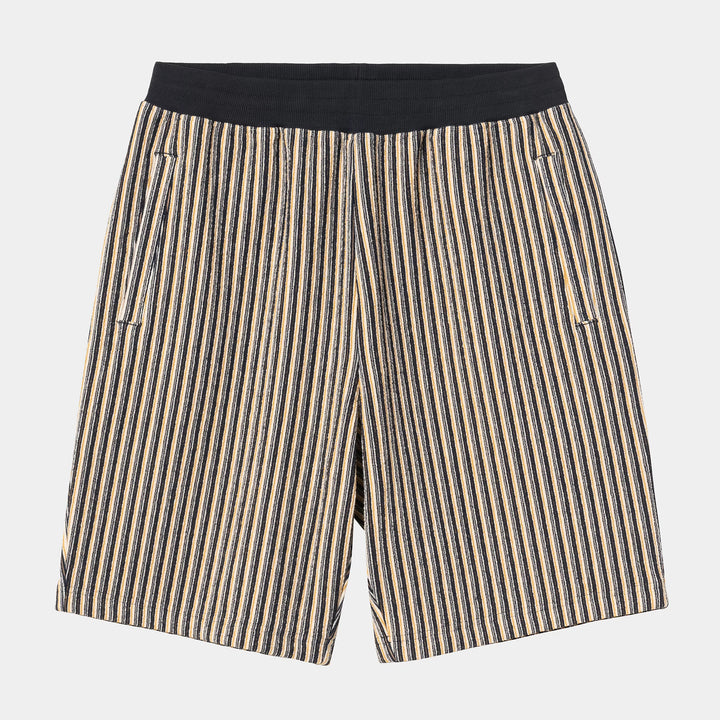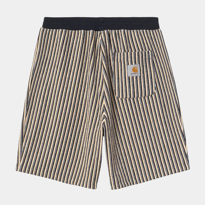 The Texture Short is made from a tactile blend of natural and synthetic fibers. The item has a balloon fit, featuring an elasticated, cinching waistband and wide legs. A woven Square Label appears on the back pocket.