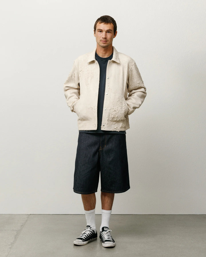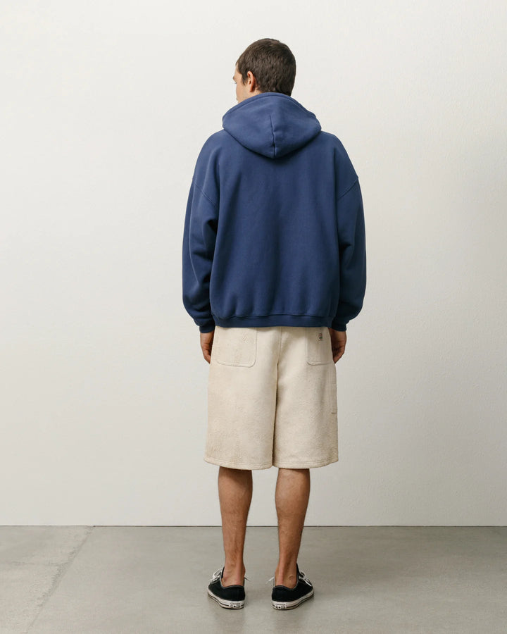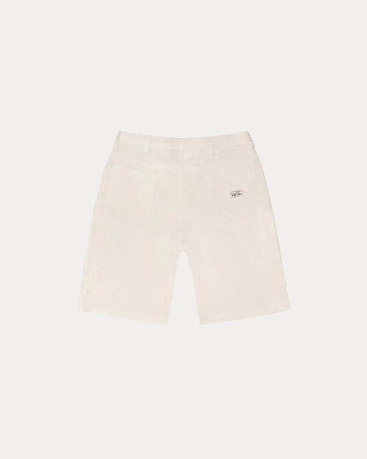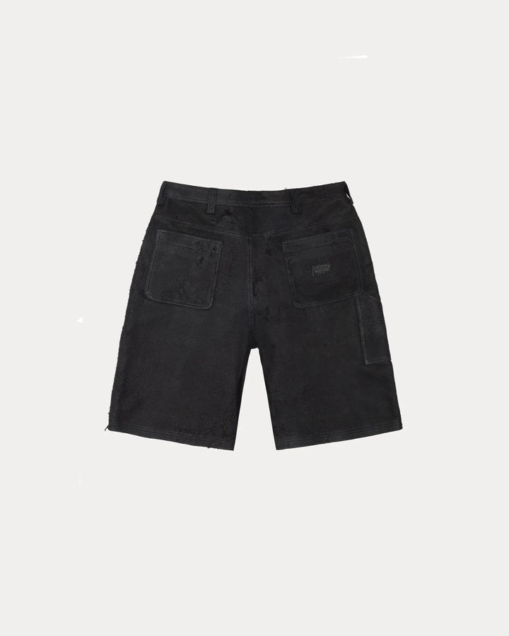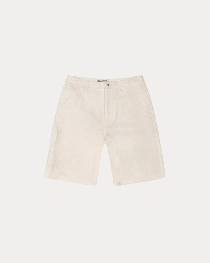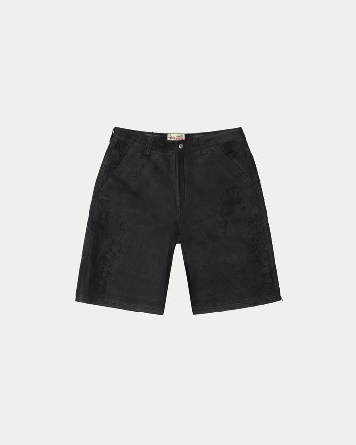 Baggy roughout leather short with a roomy fit and relaxed rise. Branded nickel shank hardware and Stüssy authentic workgear label at rear pocket. Size down for a more true-to-size fit in the waist.