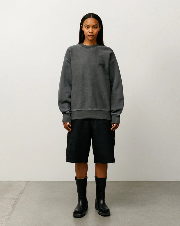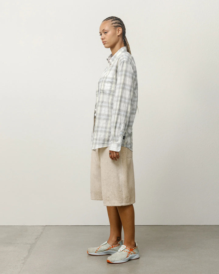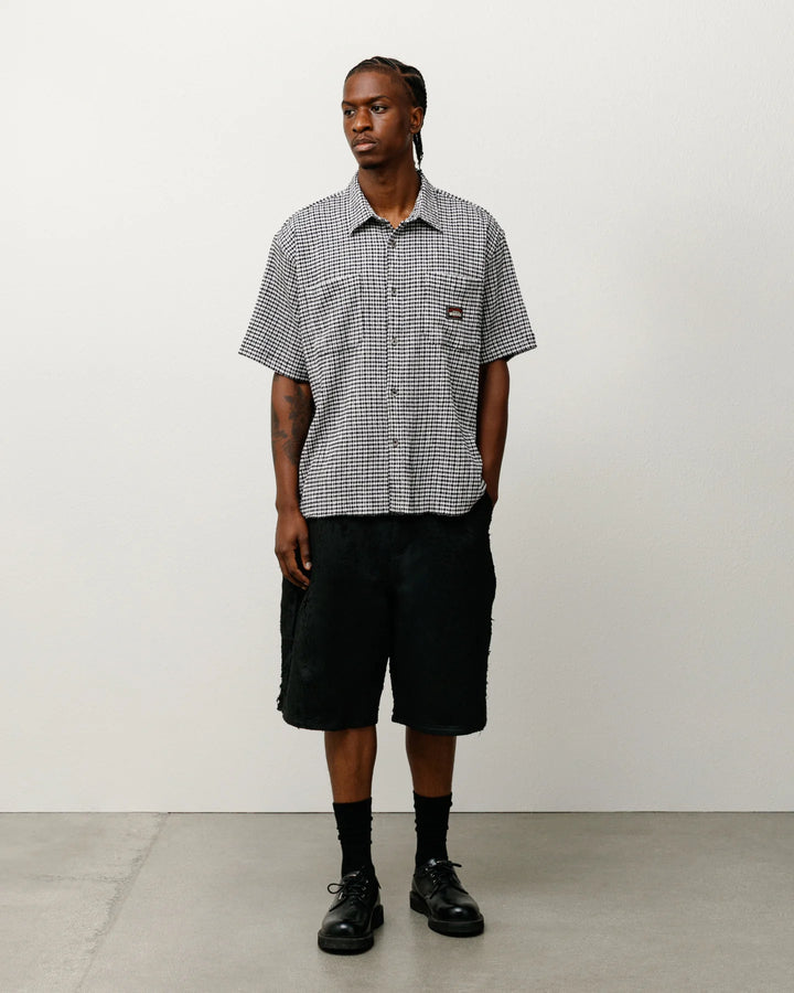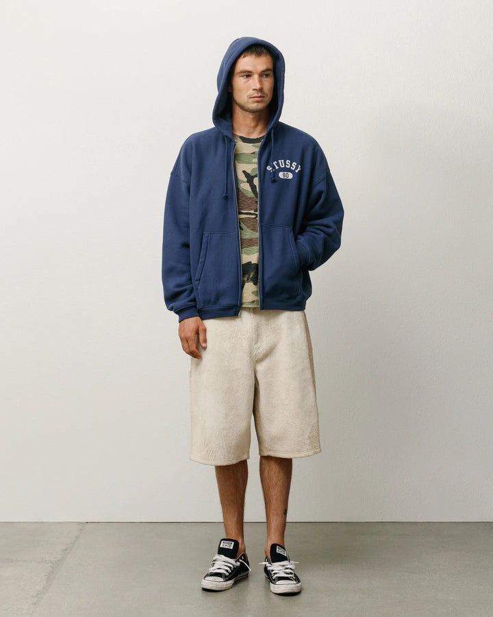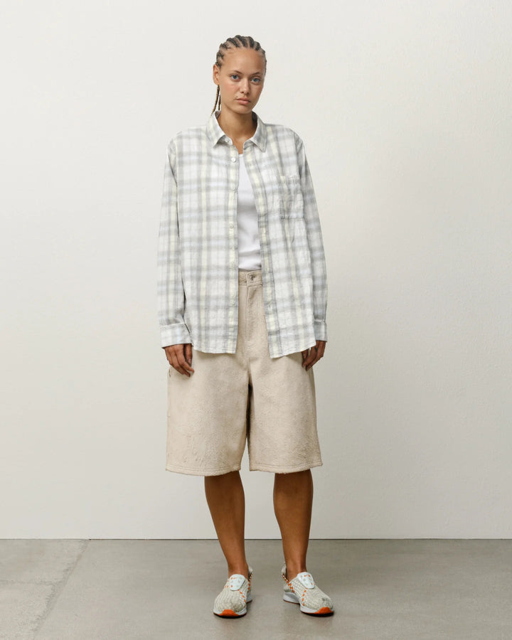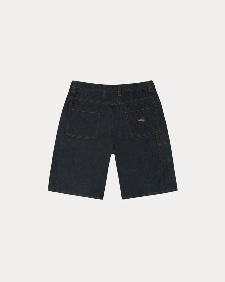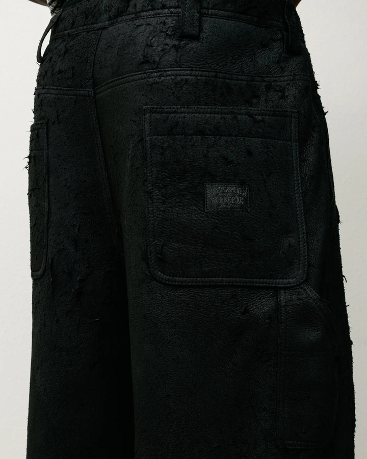 Baggy roughout leather short with a roomy fit and relaxed rise. Branded nickel shank hardware and Stüssy authentic workgear label at rear pocket. Size down for a more true-to-size fit in the waist.