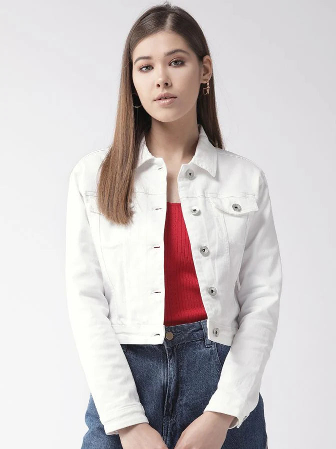 Women White Solid Denim Jacket